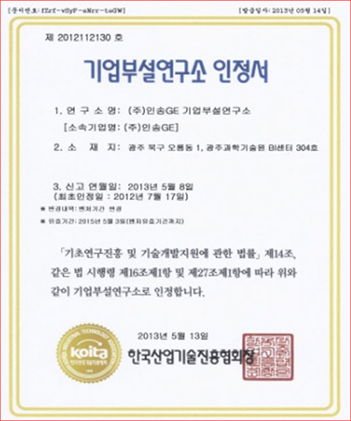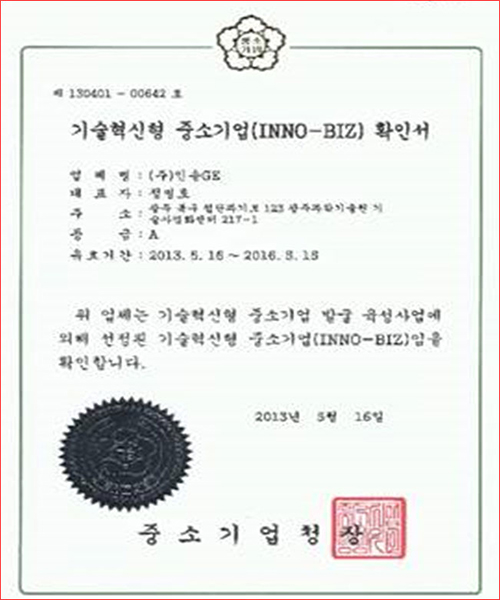 INNO-BIZ Certificate