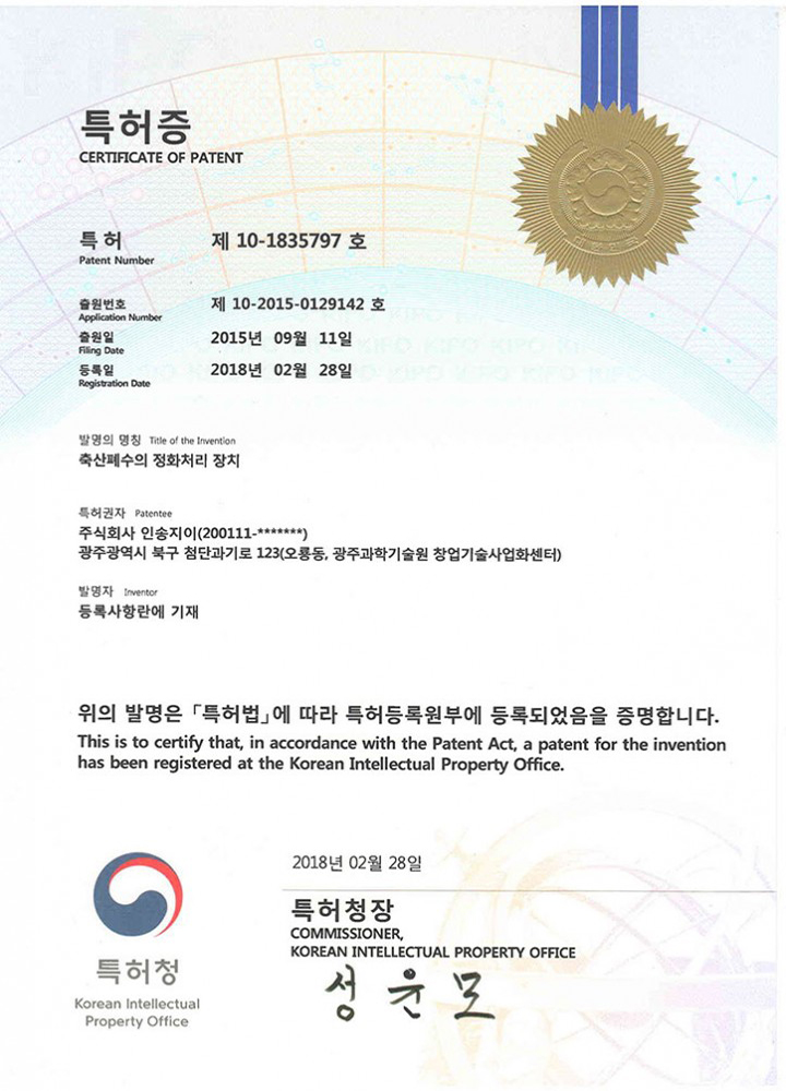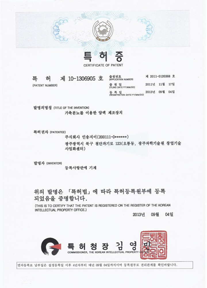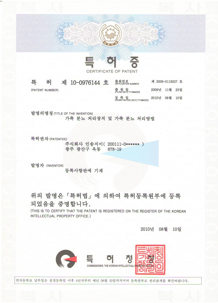 Livestock manure treatment device (patent)