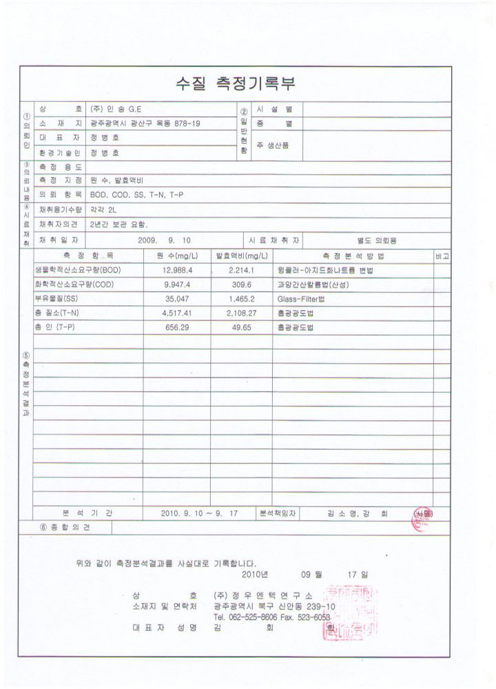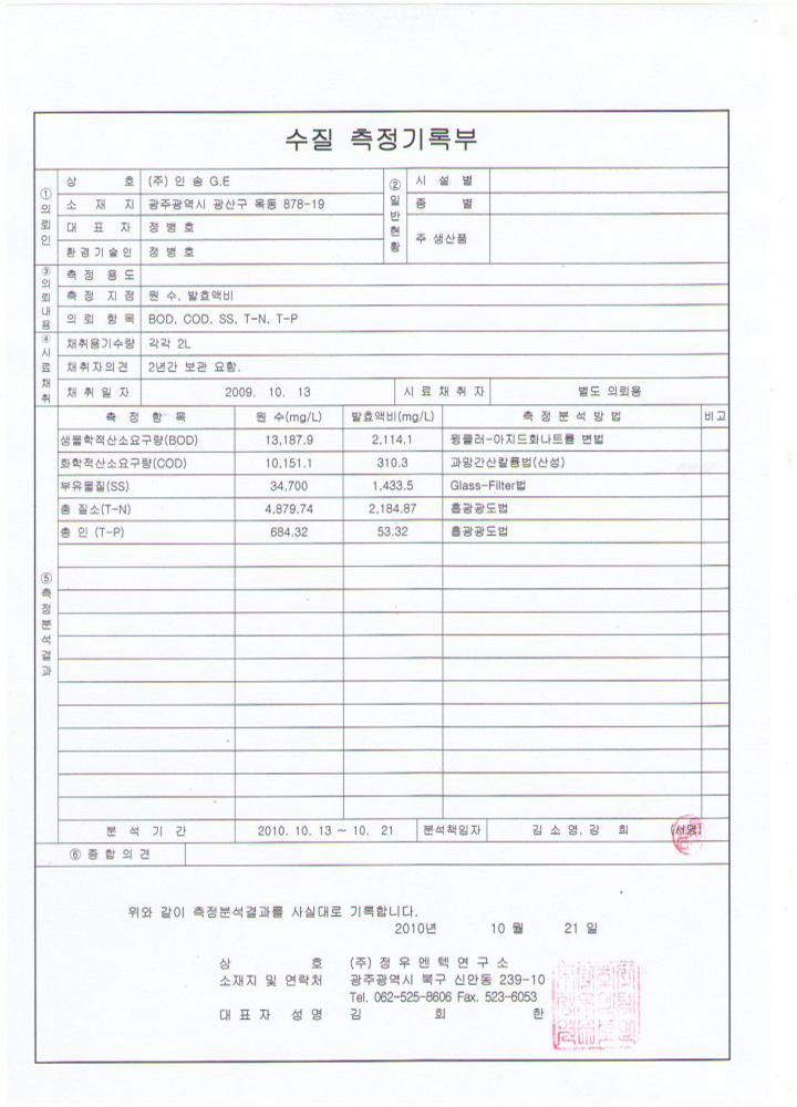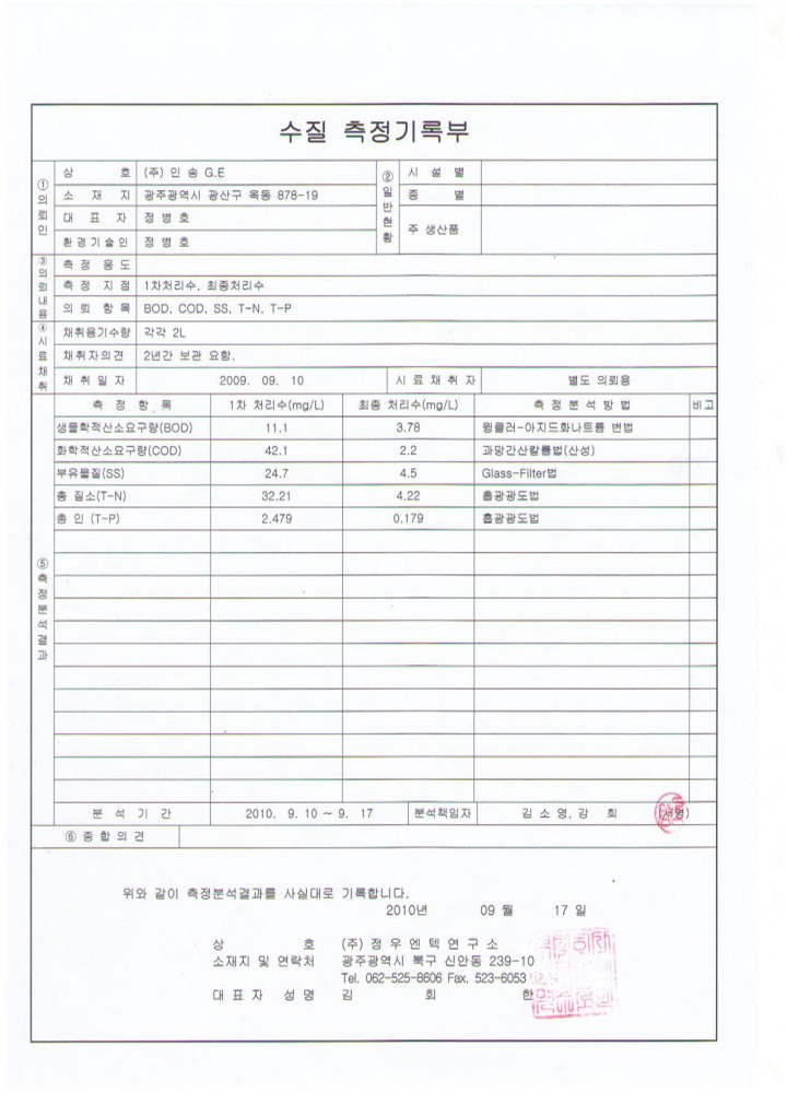 Water quality measurement record